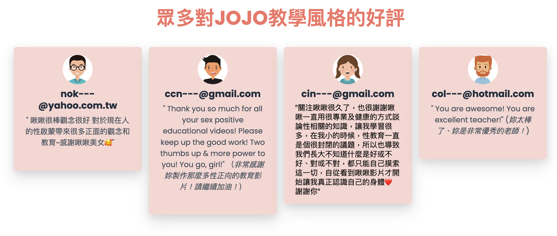 ▪︎ Jojo親自回覆評量(課前\後, 共2封信)